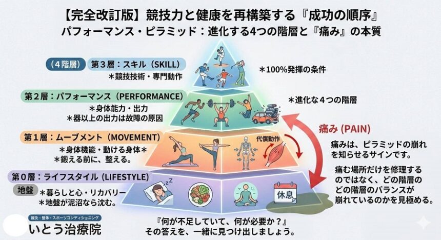 【改訂版】パフォーマンス・ピラミッド:競技力と健康を再構築する「成功の順序」|福山市神辺町 いとう治療院